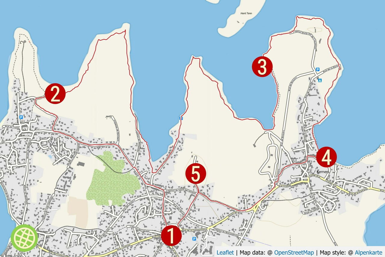 Die lang gestreckte Halbinsel Rhuys begrenzt den Golf von Morbihan Richtung Süden. Ihre Nordküste gliedert sich in kleine und flache Buchten – oft mit Austernbänken und Salzsümpfen. Entlang von vier dieser reizvollen Buchten und drei spektakulären Landzungen verläuft die Wanderung. In dieser stark von den Gezeiten abhängigen Bucht gibt es viel zu entdecken: Zahlreiche Inseln fungieren als Tupfer in der weiten Bucht, bunte Segelschiffe und Motorboote ziehen vorbei, malerische kleine Buchten mit Sandstränden und Pinienwälder laden zum Verweilen ein. Zum Ende der Wanderung gibt es einen Dolmen zu bewundern. Ein Wandervergnügen der Extraklasse.