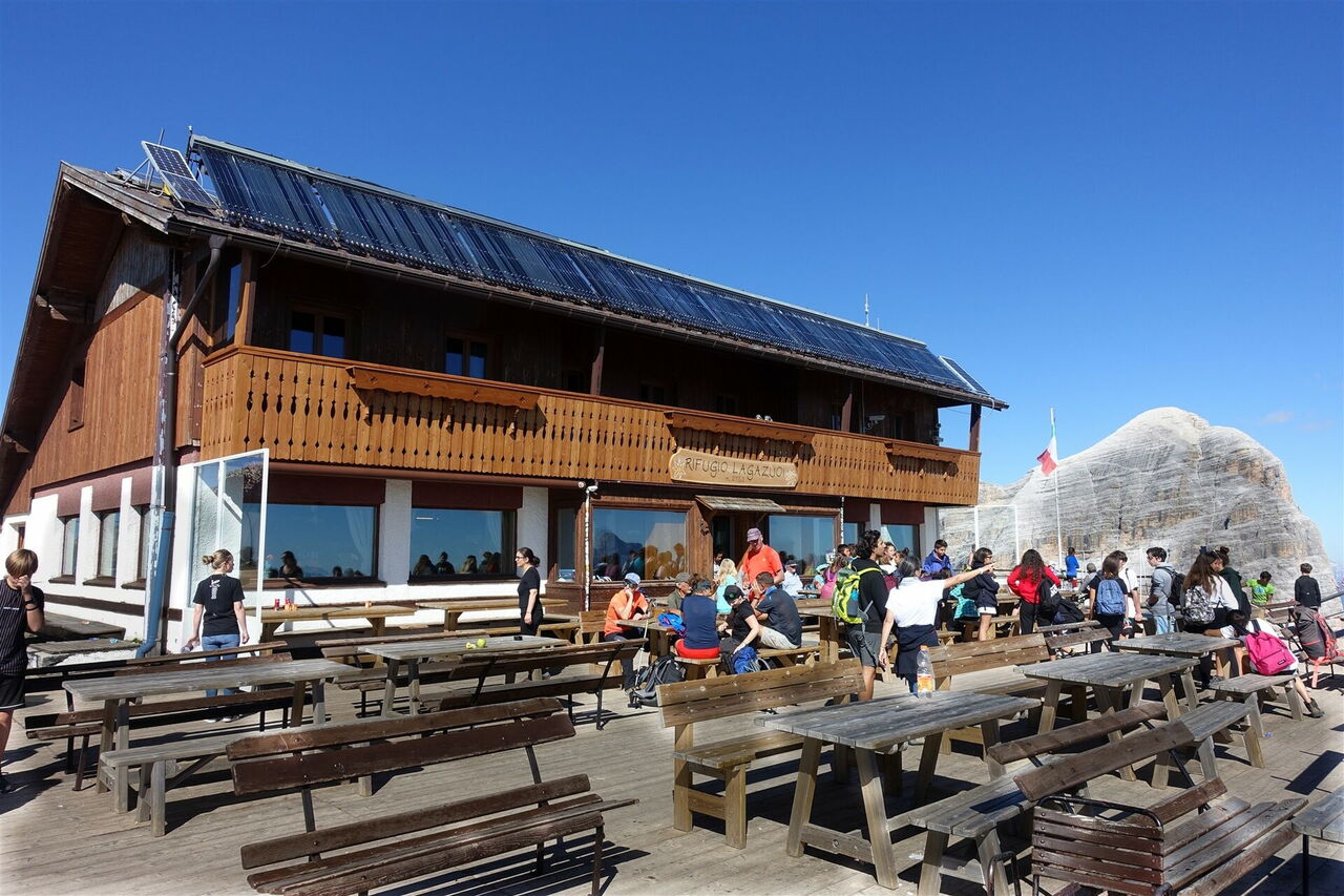 Es erwartet uns eine durchgehende Trasse. Gute Trittsicherheit und durchschnittliches Orientierungsvermögen werden benötigt. Art des Weges: 100 % Pfad. Zusatzausrüstung: keine. Einkehr: keine. Beste Wanderzeit: Mitte Juni bis Mitte September. Variante: Die Tour 24 (Etappe 7 von 22) führt über den Kleinen Lagazoui, einen Klettersteig, einem kleinen Museum mit Exponaten aus dem Ersten Weltkrieg über den Passo di Falzarego zum Rifugio Nuvolau.