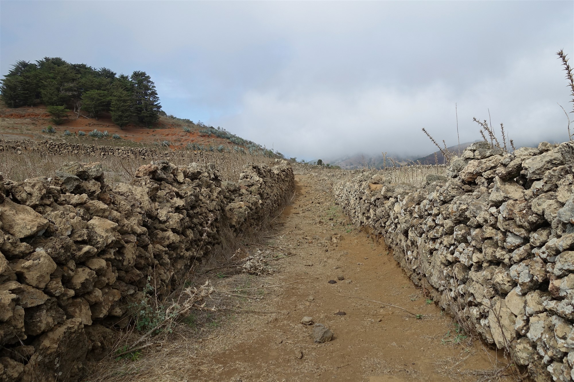 Vom (01) Start und Ziel (985 m) verlassen wir die von San Andres kommende Straße nach halb rechts. Auf der Kiefernallee erreichen wir eine Dreiwegegabelung, an der wir geradeaus weiterwandern. Wir kommen durch einen kleinen Wald, bis dann auf Höhe des rechts von uns liegenden verlassenen Bergdorfes La Albarrada der weitere Weg halb links steil bergauf führt. Nachdem die Asphaltstraße in eine Piste übergegangen ist, erreichen wir eine Anhöhe. Bei guter Sicht erheben sich die Nachbarinseln La Gomera und Teneriffa aus dem Dunst.
