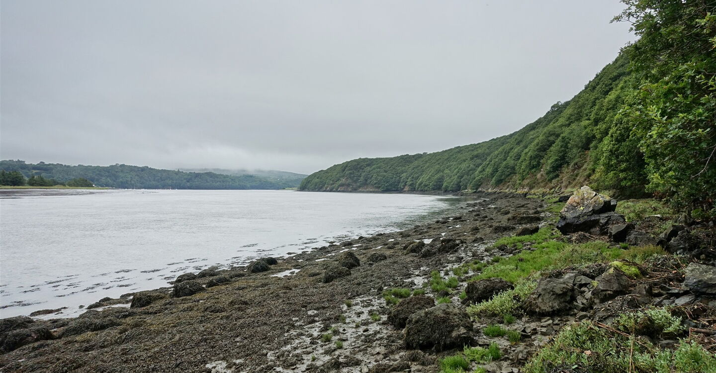 Die letzten Wölfe im Département Finistère wurden im 20. Jahrhundert erlegt. Eine Überlieferung berichtet, ein Wolf habe sich in die Fluten des Flusses Aulne Maritime gestürzt, um der jagenden Meute zu entkommen. Heutzutage wandert man unbesorgt entlang der herrlichen Mündung der Aulne Maritime, die eine liebliche Landschaft geformt hat: Küstenwälder mit Maronenbäumen und mächtigen Eichen, Felder, Schilf, Watt und Kieselbuchten. Auf der gegenüberliegenden Uferseite erhebt sich die eindrucksvolle Silhouette des Berges Menez-Hom. Die architektonisch sehr interessante und geschwungene Hängebrücke Pont de Terenez passt nicht so ganz in das Naturspektakel – trotzdem ein faszinierendes Outdoor-Abenteuer.