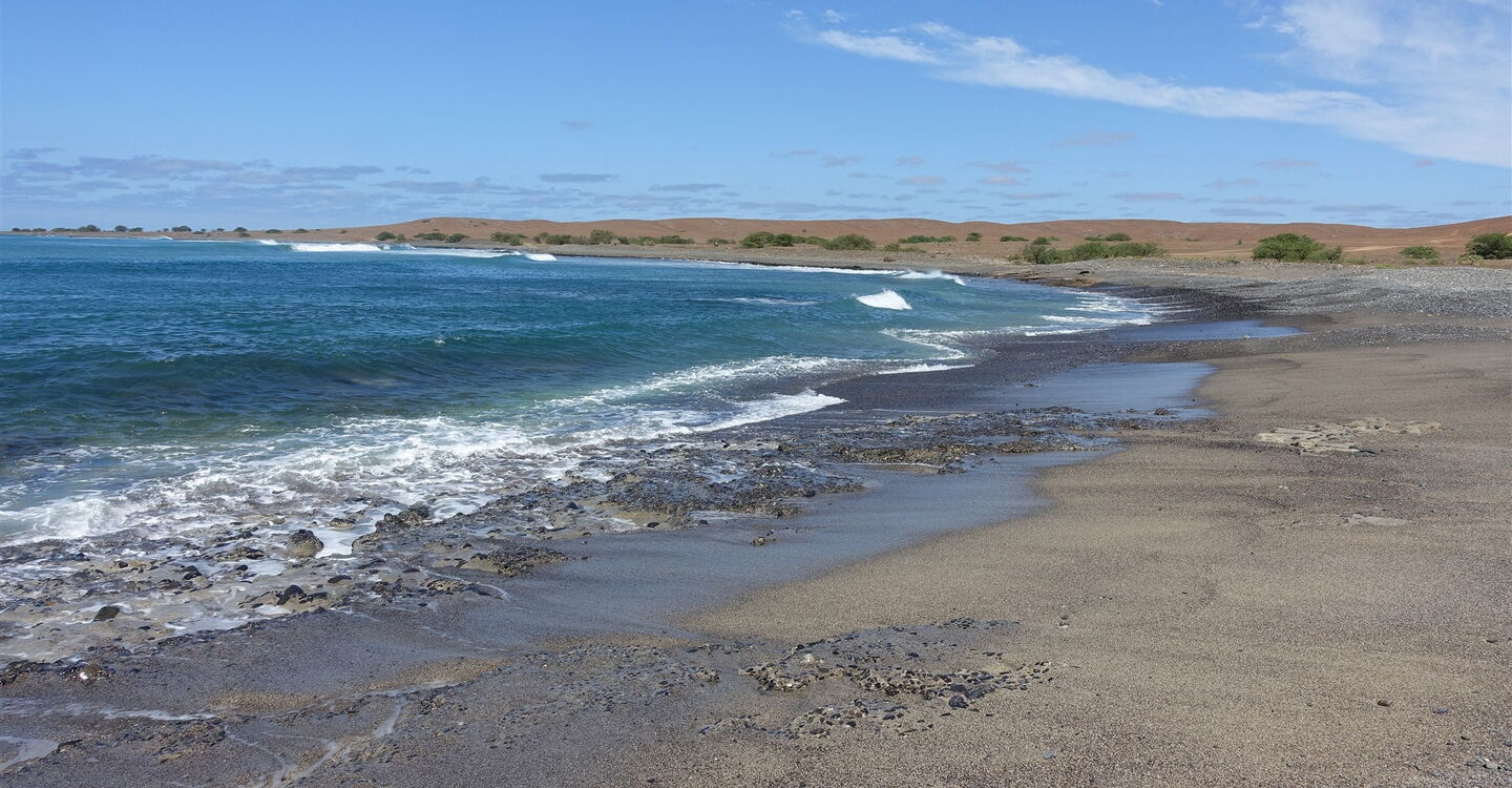 Diese besonders naturnahe Wanderung führt durch eine wüstenartige Landschaft mit wenigen Akazien und Kronenblumen (Calotropis gigantea). Nördlich der Bucht von Murdeira geht es an der Küste entlang, vorbei an kleinen und verträumten Badebuchten, bis zu einem versteckten und feinsandigen Traumstrand. Dieser befindet sich am Fuße des 175 m hohen Vulkans Monte Leão. In der absoluten Abgeschiedenheit folgen weitere Naturstrände, bis wir den, vom Tourismus noch nicht entdeckten, Fischerort Palmeira erkunden. Der Gesang vom Meer und Wind ist unser ständiger Begleiter auf dieser Tour.