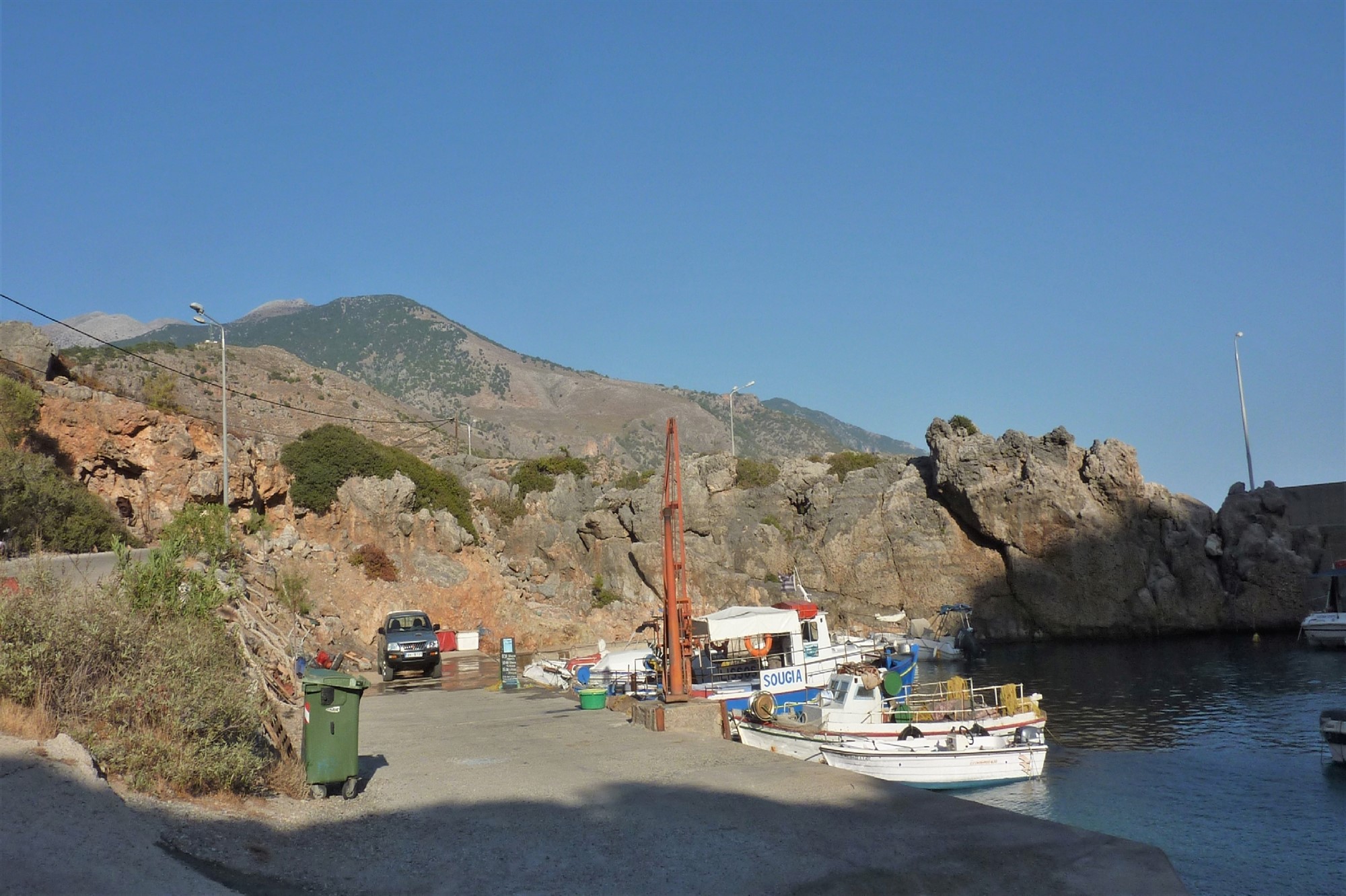 Von 01 Sougia (3,5 m) wandern wir auf der Promenade in westliche Richtung bis zum kleinen Hafen. Ein kleines Stückchen hinter der Hafenmole gehen wir über einen kurzen Strandabschnitt in die Schlucht.