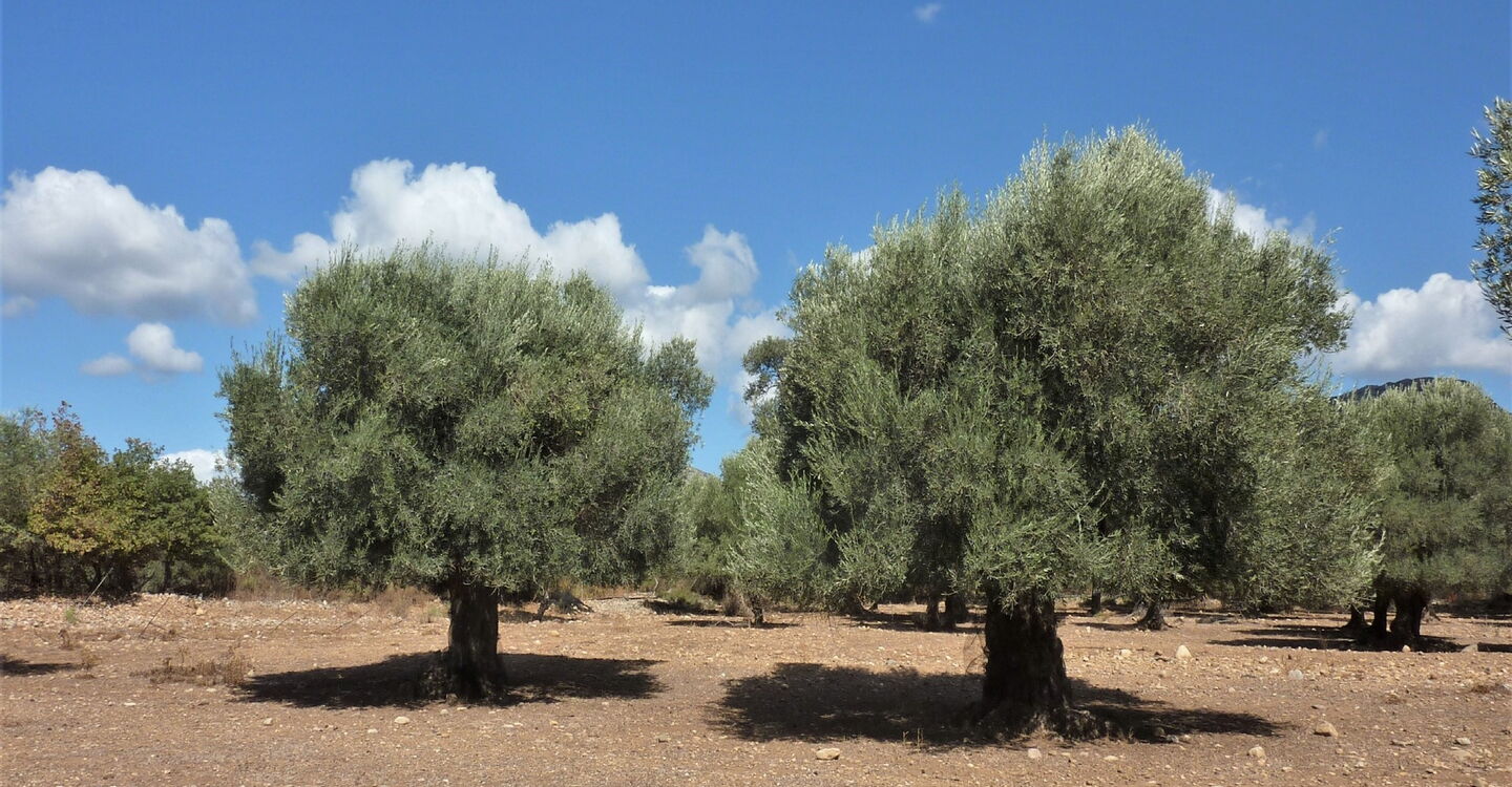 Wir gehen auf dem gleichen Weg zurück, steigen aber nicht rechts zum Container ab, sondern gehen geradeaus weiter, nun direkt hinunter in das Dorf 04 Koxare (273 m). Hinter der Bushaltestelle biegen wir links in die Straße Richtung Villa Rogdia ein und gehen bei der direkt anschließenden Weggabelung wieder links. Hinter einer Gedenktafel und einem kleinen Platz verlassen wir Koxare. Es geht wie folgt weiter: nach 70 m rechts bei der Weggabelung und dann in die zweite Straße rechts. Es folgt ein idyllischer Weg durch endlose Olivenhaine.
