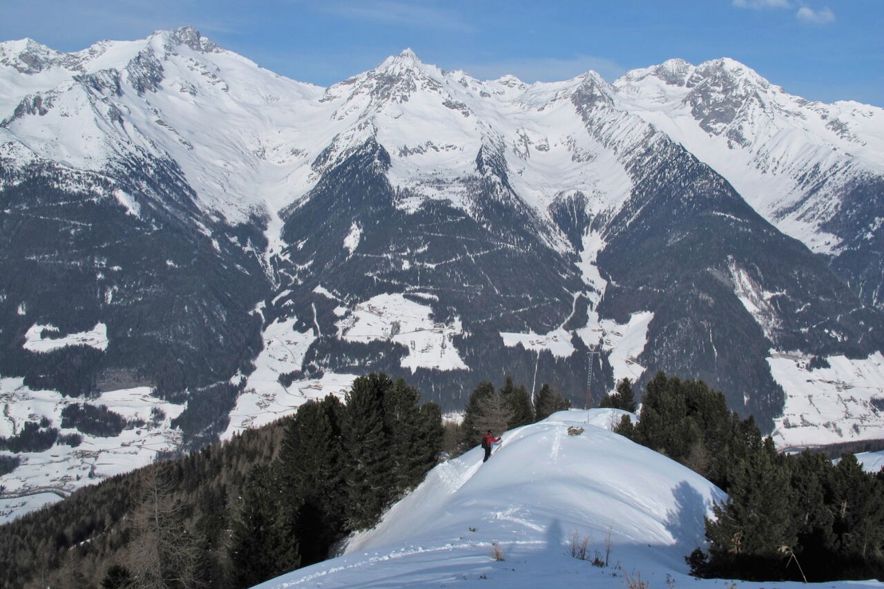 Das eher unbekannte Tauferer Ahrntal erreicht man von Bruneck. Schon aus der Ferne sieht man die imposanten Zillertaler Berge, die Teil des Alpen-Hauptkamms sind. Die örtliche Wirtschaft des Tals hat sich im Hauptort Sand in Taufers angesiedelt. Trotzdem findet man eine gesunde Mischung aus Industrie und Tourismus vor. Passiert man die Burg Sand in Taufers kommt man zu den Skigebieten Speikboden und Klausberg. Sie sind immer noch ein Geheimtipp und bieten viel Freiraum für Variantenabfahrten. Ich freue mich, euch nachfolgend ein paar dieser Touren vorzustellen zu können.