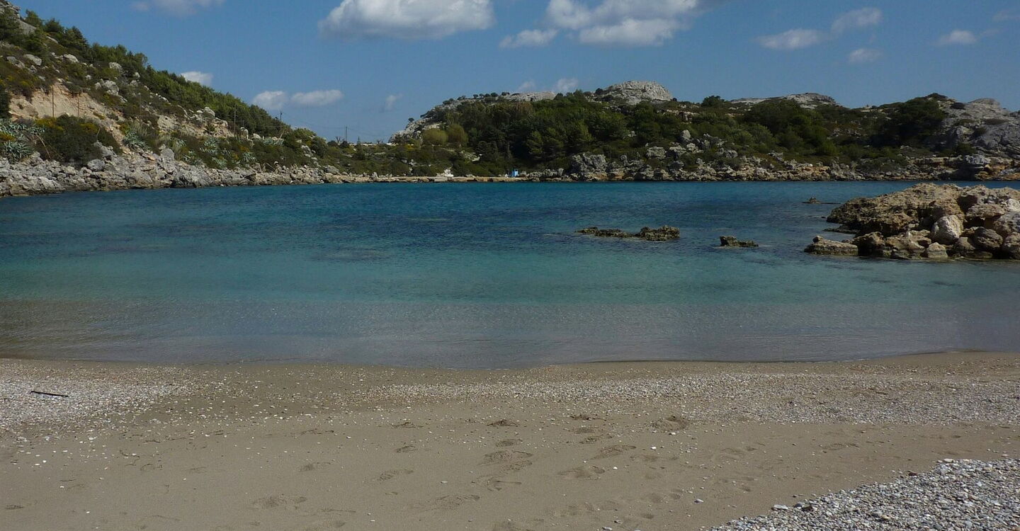 4 km südlich von Faliraki befindet sich der wunderschöne Strand von Ladiko, gelegen in einer beeindruckenden Bucht. Ein sehr lohnender wildromantischer und unberührter Panoramapfad führt von dort zu den Ruinen einer antiken Festung. Während der Wanderung treffen wir auf eine offene Höhle, wo sich ein unvergesslicher Blick wie durch ein Fenster auf das tiefblaue Meer ergibt. Nach der Wanderung wartet als Belohnung eine der schönsten Buchten im Norden von Rhodos, die Anthony-Quinn-Bucht, auf ein entspanntes Sonnenbad.
