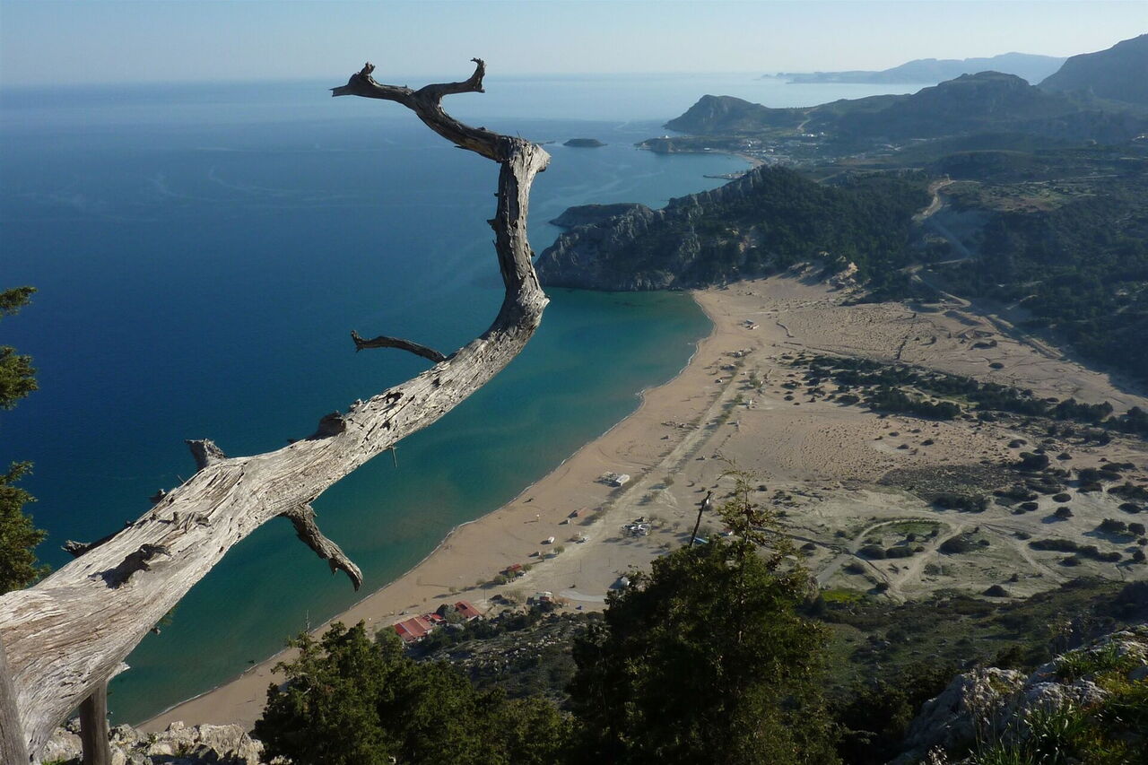 Eine Legende besagt, dass Fischer Ende des 19. Jahrhunderts eine Ikone am Strand von Tsambika fanden. Man beschloss, auf dem in der Nähe liegenden, 325 m hohen Berg eine Kapelle für die Ikone zu errichten. Es mussten alle Bewohner der Gegend, auch die kinderlosen Frauen, mithelfen. Als die Kapelle fertig war, wurden diese Frauen wie durch ein Wunder schwanger. Noch heute wallfahren Frauen zur Kirche der heiligen Jungfrau, mit der Bitte um Fruchtbarkeit. Auf der gesamten Wanderung ergeben sich immer wieder faszinierende Ausblicke über die komplette Nordwestküste von Rhodos. Und dann ist da noch der Tsambika-Strand, er gehört mit zu den schönsten Stränden auf Rhodos. Malerisch liegt der 800 m lange, feine goldene Sandstrand zwischen 2 Hügelketten.