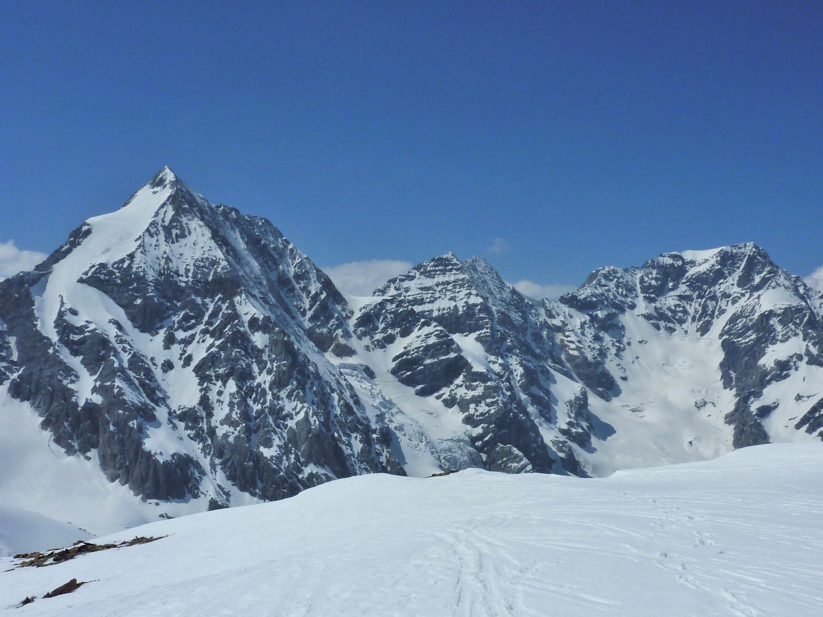 Nun geht es auf dem Grat zur Eisseespitze mit einem gigantischen Panorama auf die umliegende Bergwelt. Die Abfahrt geht hinunter auf den Langenferner und dann weiter ins Martelltal.