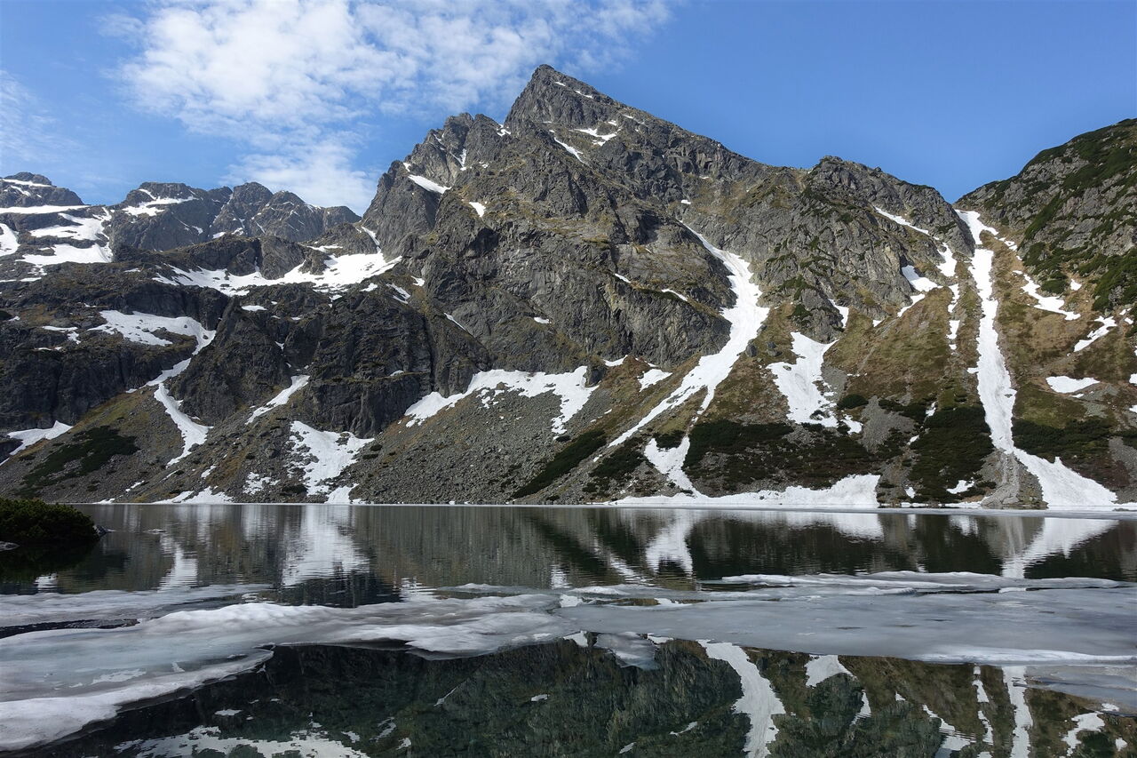 An der sofort folgenden Weggabelung, links führt ein weiterer Weg zur Hütte, gehen wir halb links weiter und verlassen auf dem nachfolgenden Pfad die Dolina Suchej Wody Gąsienicowej. Als Nächstes gehen wir nun links um den Gletschersee herum. Mittig vom See ignorieren wir den linken Abzweiger, der zum Klettersteig Orla Perć führt, um dann an dessen Ende den Zufluss des 03 Czarny Staw Gąsienicowy (1674 m) zu queren. Es folgt ein weiterer Abzweiger, ebenfalls links, auch dieser führt steil bergauf zum Klettersteig Orla Perć. Wir gehen jedoch rechts und folgen dem blau markierten Wanderweg, ausgeschildert Richtung Zawrat.