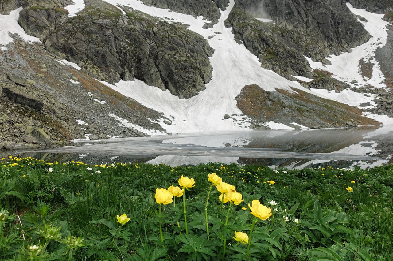 Das ursprüngliche Tal verengt sich und wir kommen oberhalb eines weiteren Sees vorbei. Sattgrüne Wiesen und Felsen mit Gletscherschliff prägen die Landschaft auf dem nachfolgenden Abstieg. Hinter einem großen Wasserfall und einem weiteren See befindet sich auf der rechten Seite der 04 Sliezsky dom (1623 m), die erste Einkehrmöglichkeit. An der Weggabelung orientieren wir uns in südöstlicher Richtung und gehen auf dem grün markierten Pfad weiter bergab Richtung Tatranská Polianka.