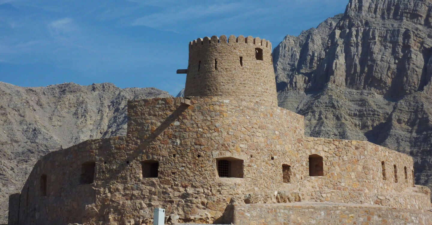 Wir überqueren die Grenze zum Oman und kommen schon bald in den kleinen Ort Bukha. Hier können wir das neuere Fort an der Hauptstraße und das alte Fort Al Qala auf einer Anhöhe erkunden.