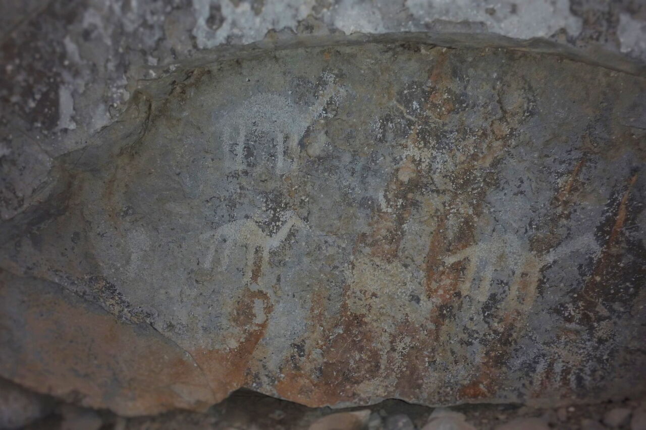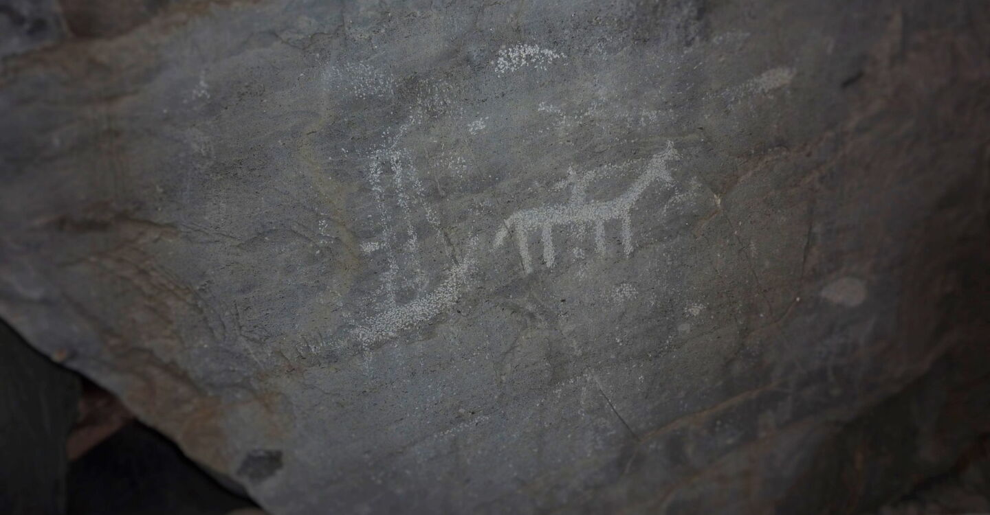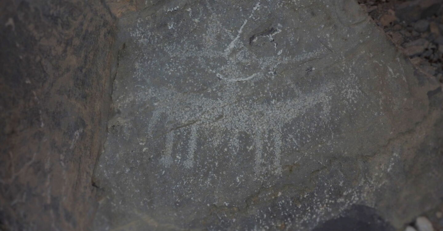 Genau auf der anderen Straßenseite, gänzlich unscheinbar und ohne Markierung, sind direkt am Straßenrand die 2.000 Jahre alten Felszeichnungen mit Tieren und Kriegern zu sehen.