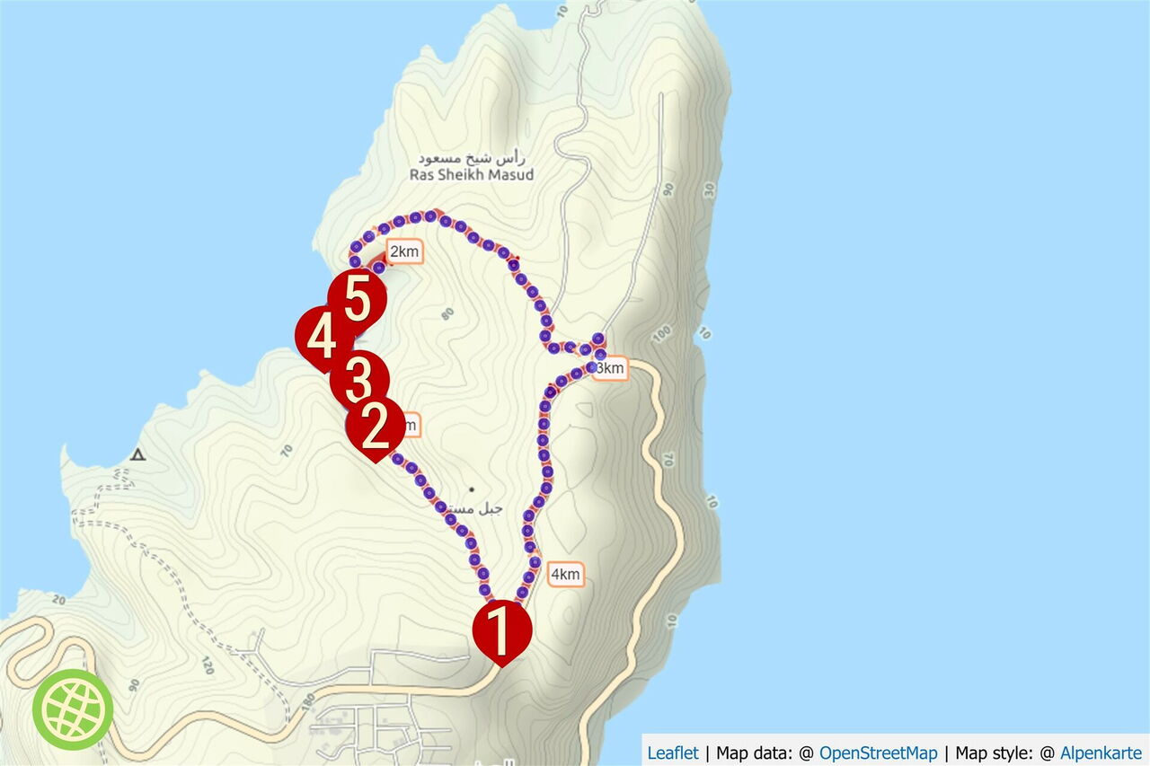 Die Garmin-Navigationsgeräte erlauben die Eingabe der GPS-Koordinaten N26 14.132 E56 12.659. Sie führen dich zum Startpunkt, von wo du den heruntergeladenen GPS-Track verwendest.