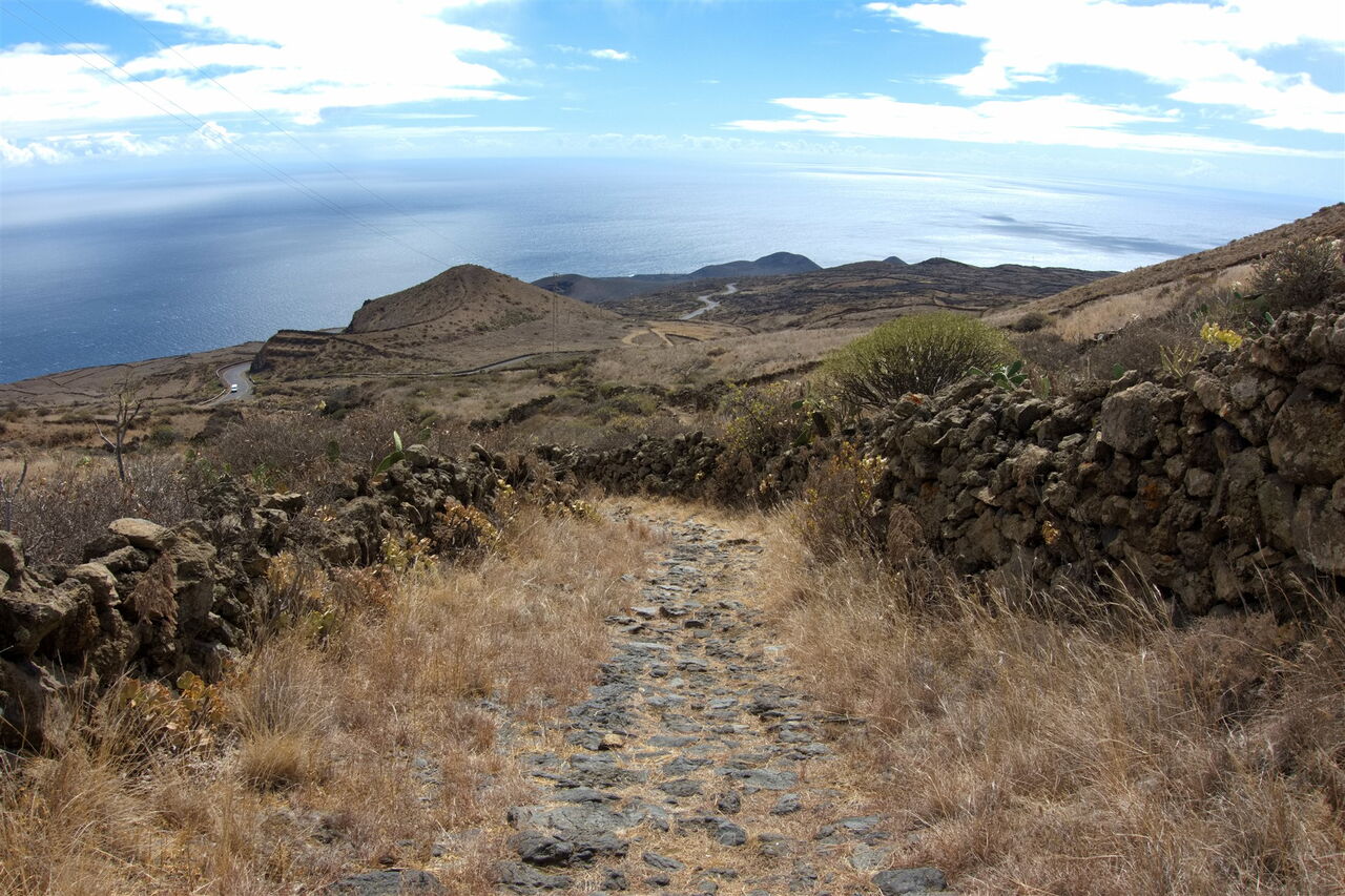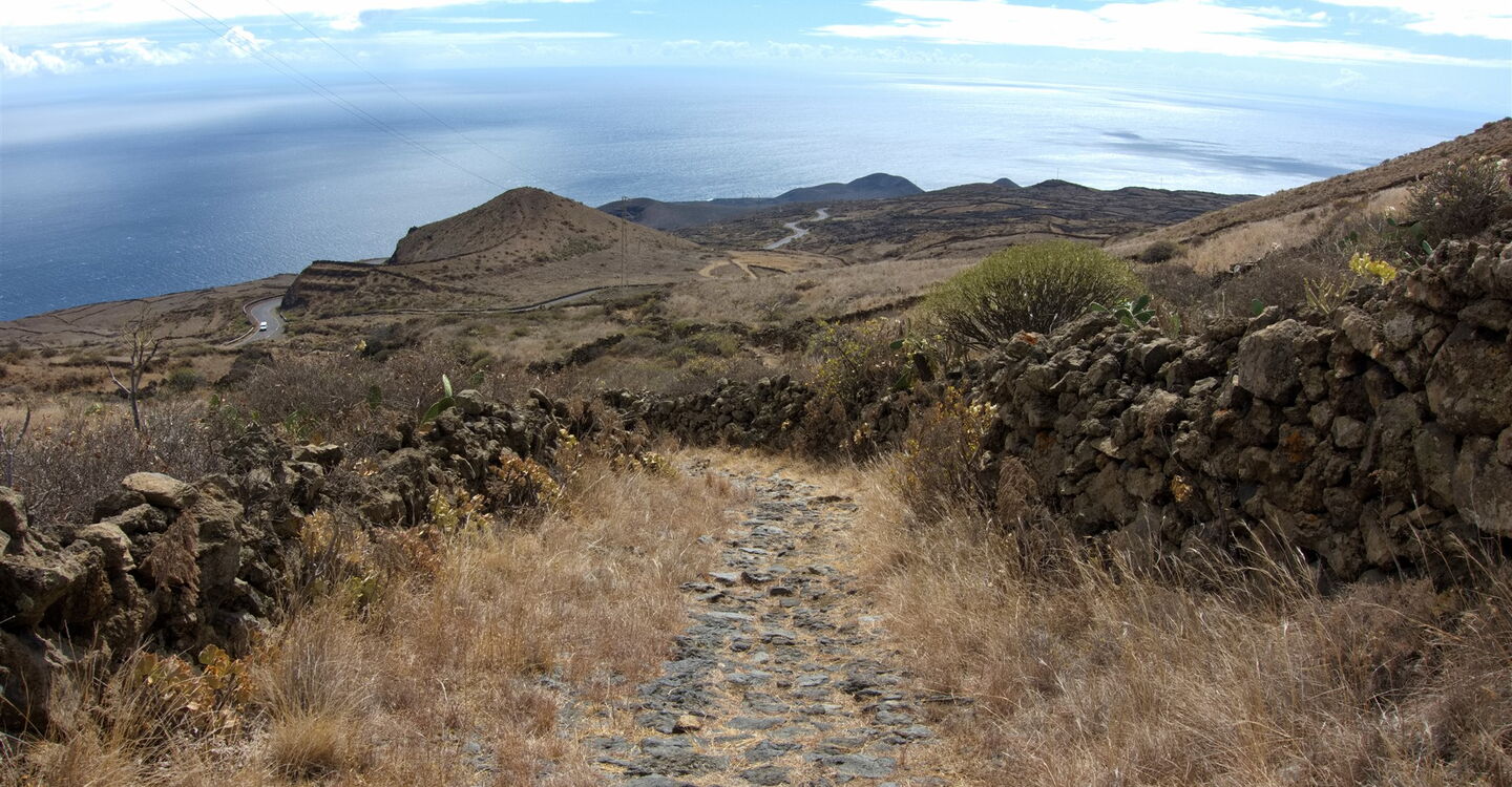Der historische Verbindungspfad zwischen dem Bergdorf El Pinar und La Restinga am Atlantischen Ozean wurde in der Vergangenheit intensiv genutzt, um Meeresfrüchte und Fische nach El Pinar zu transportieren. Dort wurden sie verkauft oder gegen andere Erzeugnisse eingetauscht. Zum Pfad: Beim Abstieg lassen wir schnell wir die letzten Kanarischen Kiefern hinter uns. Bis La Restinga geht es durch eine karge und trockene Vulkanlandschaft. Eine Genusswanderung ohne große körperliche Anstrengung.