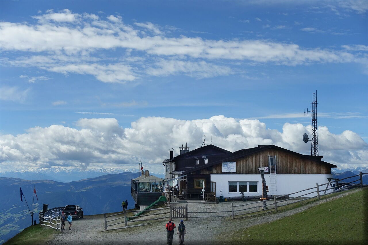 Der klassische Dolomitenhöhenweg Nr. 2 beginnt bei der 01 Talstation der Plose-Kabinenbahn (1.067 m). Entweder man steigt über die Wanderwege 5 und 17 bis zur Bergstation auf oder man wählt die einfachere Variante und fährt mit der Kabinenbahn.