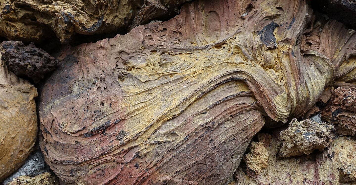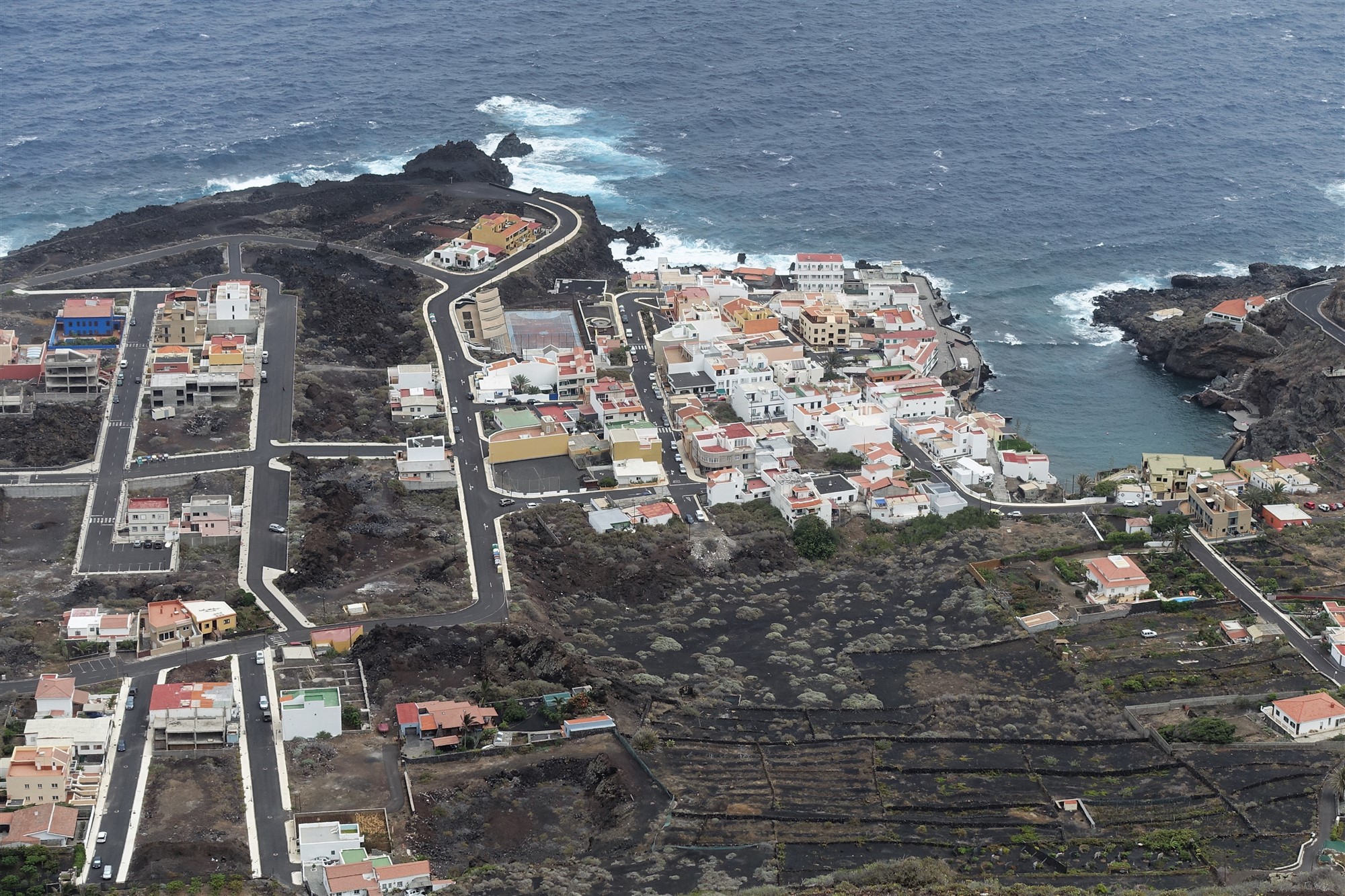 Wir nehmen den linken Abzweiger Richtung Gualisancho. Wer etwas essen möchte, geht geradeaus weiter und trifft dort auf das (05) Restaurant in Echede (360 m). Auf der so gut wie gar nicht befahrenen Straße kommen wir an wunderschönen Villen und Anwesen vorbei. Wir ignorieren Abzweiger, im Zweifel helfen weiß-gelbe Markierungen dabei, den richtigen Weg zu finden. Schlussendlich gabelt sich die Straße, direkt vor uns befindet sich ein kleines Haus, das kunstvoll mit Lavabrocken verkleidet ist. Auf einem Pfad zwischen Weinstöcken und einer Steinmauer gehen wir direkt an diesem Haus rechts vorbei. Unterhalb der alten Mülldeponie wandern wir durch Malpais und im weiteren Verlauf auf einem Trampelpfad über die rotbraunen Hänge des Vulkans La Cancela, bis wir auf schwarze Lapilli treffen. Unser Weg mündet in den Camino von Valverde nach Tamaduste, während wir bereits links unterhalb Tamaduste sehen. Auf einem bestens gekennzeichneten Camino geht es bis zum Ausgangspunkt.