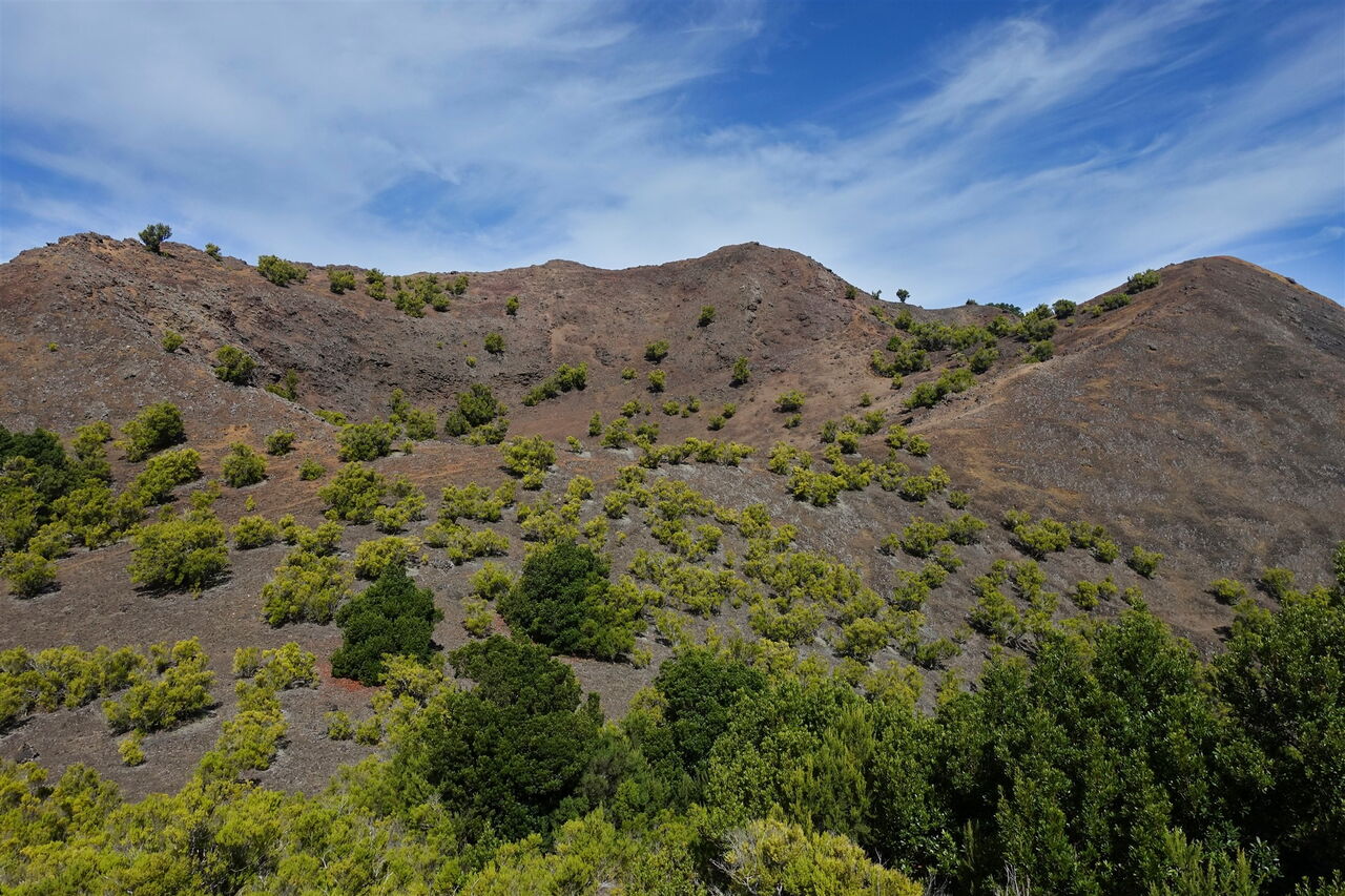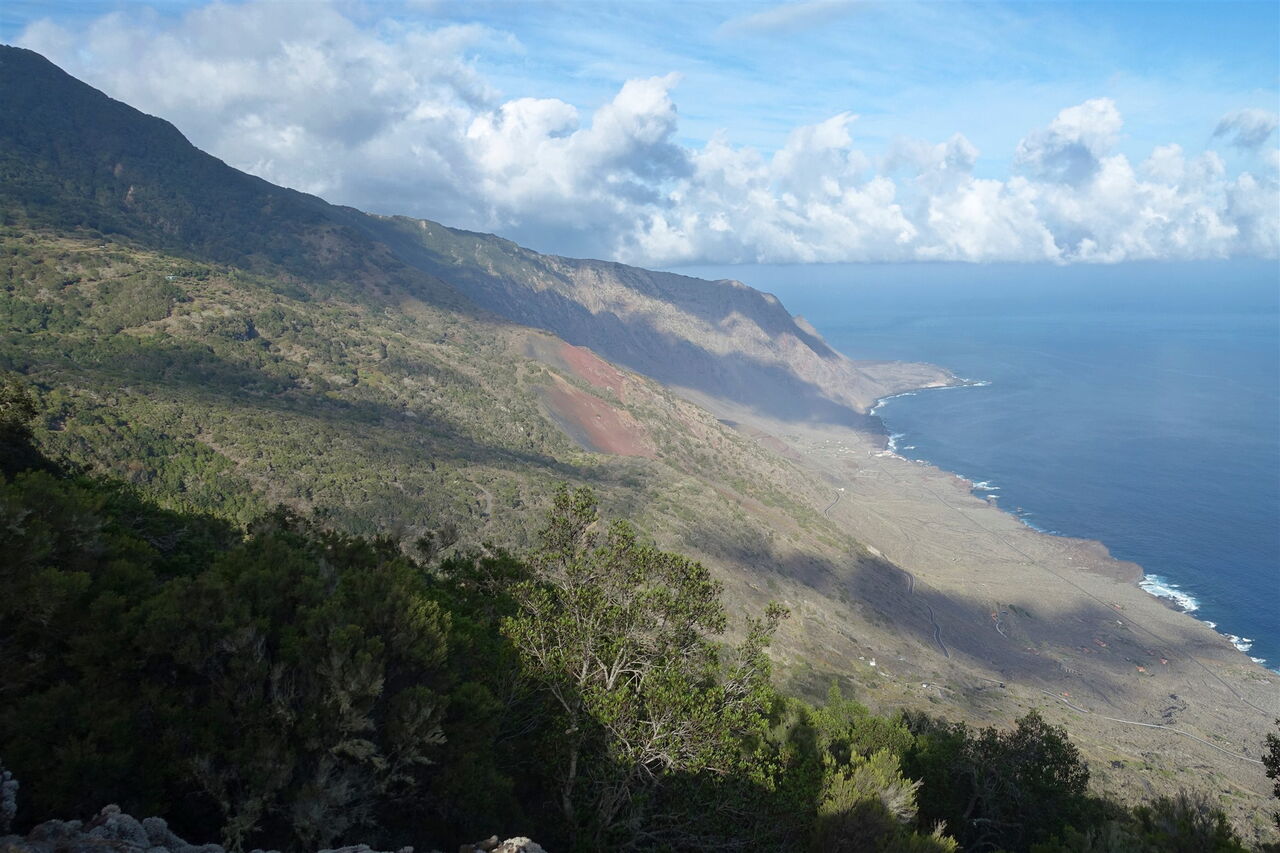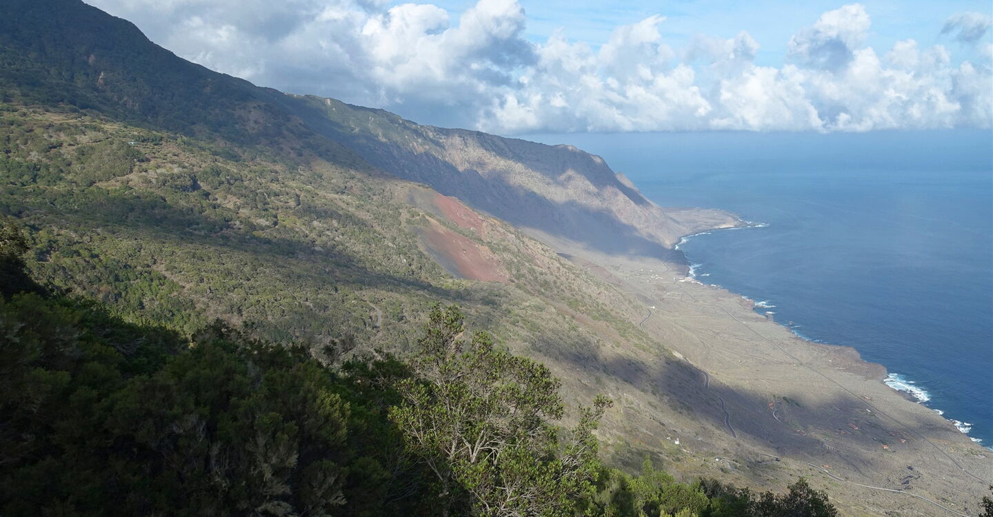 Aufgrund eines gravitationsbedingten Abrutschens entstand das El-Golfo-Tal in seiner heutigen Erscheinungsform. Daraus resultierte aber auch ein weiterer geologischer Prozess: Das auf der Insel ruhende Gewicht des abgerutschten Erdreiches war nun reduziert und konnte dem zunehmenden Druck von aufstrebenden Vulkanen nicht mehr widerstehen. Eine sogenannte phreatomagmatische Eruption durchschlug die überlagernden Gesteinsmassen, es entstand der Vulkan Tanganasoga. Feine vulkanische Asche lagerte sich im El-Golfo-Tal ab. Auf dieser Wanderung umrunden wir diesen besonderen Vulkan. Am Gipfel wandern wir völlig unspektakulär am ursprünglichen Krater entlang. Ein Wandererlebnis der Extraklasse.