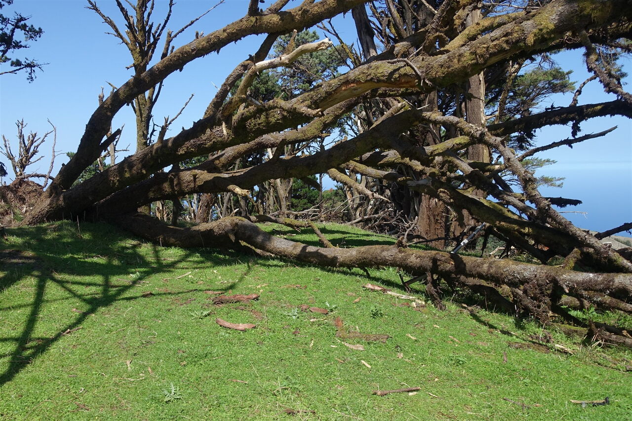 Das kleine, idyllisch gelegene Bergdorf Tinor befindet sich im Einflussbereich der Passatwolken. So wachsen dort prächtige Feigenbäume, Drachenbäume, vitaminreiche Wollmispelfrüchte, Maronenbäume, Kakteen und Agaven. Zwischen Hausruinen befinden sich kleine, sehr gepflegte Felder. Von dort führt die Wanderung auf einen der aussichtsreichsten Gipfel im Norden der Insel: Bei guter Sicht lassen sich die Nachbarinseln La Palma, La Gomera und Teneriffa ausmachen. Über das Bergdorf Tina schaut man herunter bis zum 1139 m tiefer liegenden Fährhafen von El Hierro. Mitten in der Natur kommt der Geist zur Ruhe.